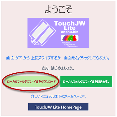 TouchJW for Windowsのローカルフォルダにファイルをダウンロードしよう。